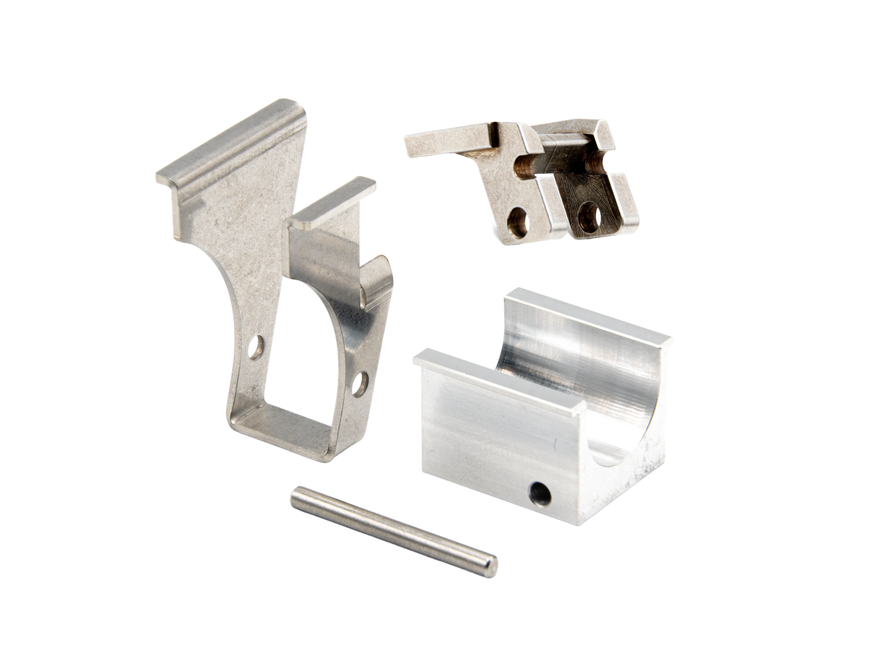 The included Gen 3 full-size locking block is machined from 17-4 stainless steel for exceptional strength and corrosion resistance. This is a direct replacement for Glock Part #1447 and fits all three-pin Gen 3 Glock 17 pattern builds including the DD17.2 and its various remixes.